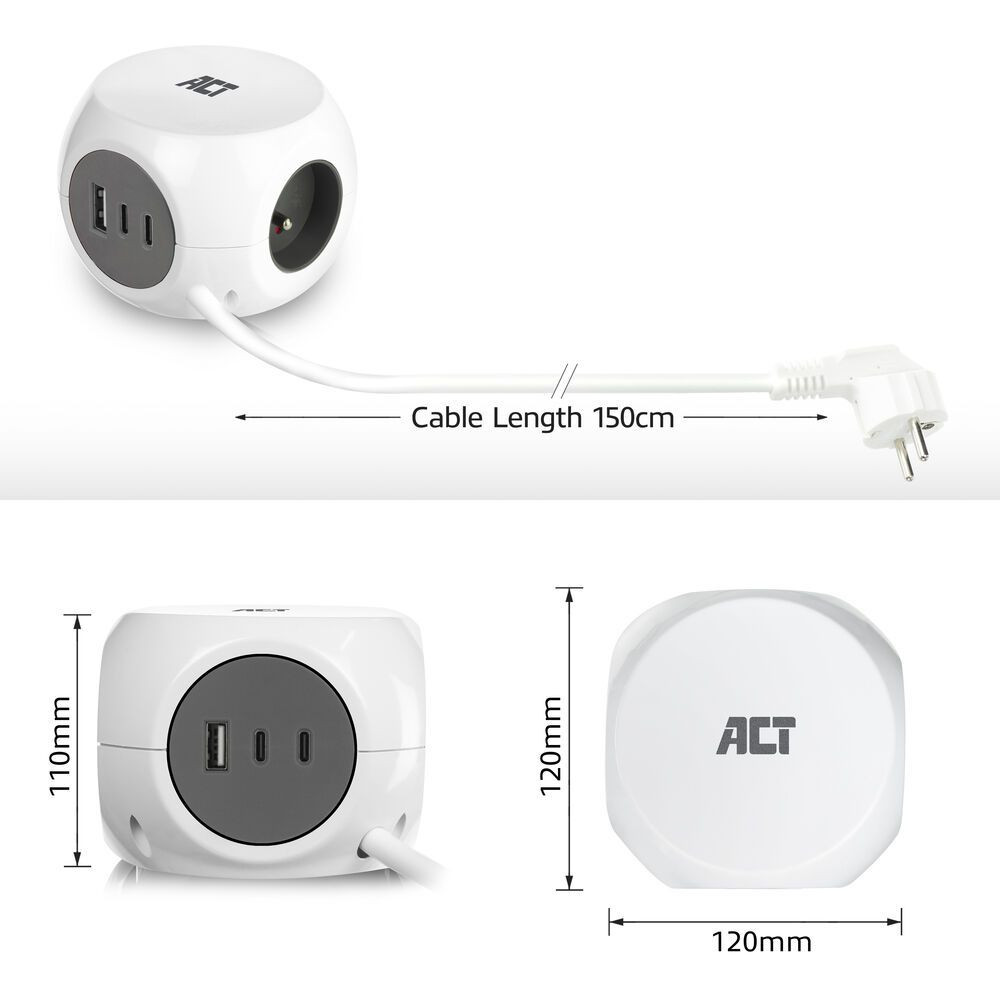 ACT Power Strip Cube E Socket Hálózati Elosztó 3DIN 1,5m White