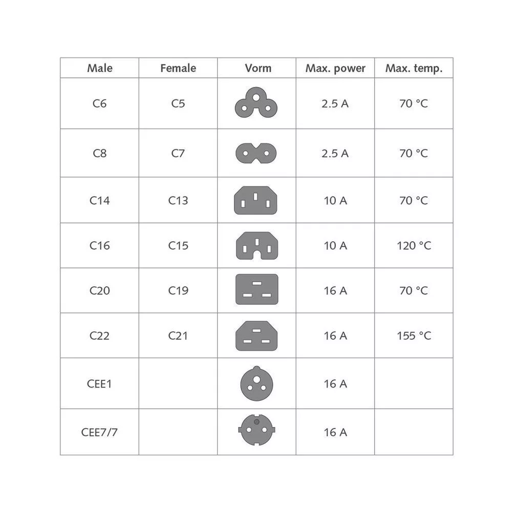 A C14-C15 tápkábel a leggyakrabban használt márkák hálózati kapcsolóinak táplálására szolgál.