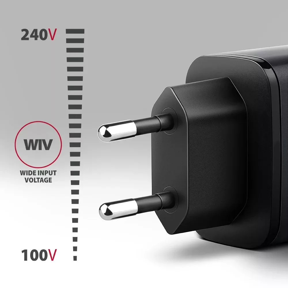 • Wide Input Voltage – wide input voltage range function, protects the adapter against undervoltage and overvoltage at the input and enables use with different “national power standards”.