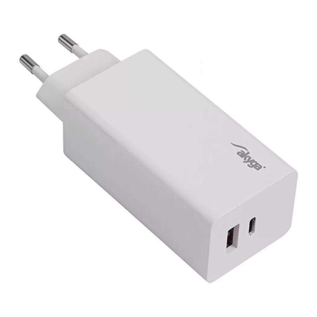 Az Akyga AK-CH-20 GaN töltő a legkorszerűbb energiaellátási megoldás a mobileszközök számára. Könnyű és kézreálló, nagy teljesítménye pedig lehetővé teszi, hogy gyorsan töltsd a készülékeket 100 wattos maximális teljesítménnyel. Ráadásul az új GaN anyag használata lehetővé tette a töltő méretének jelentős csökkentését. Ezért a tápegység ideális otthoni és útközbeni használatra egyaránt. A hálózati töltő két USB-porttal rendelkezik. Egy A típusú USB-port 18 W-os és egy C típusú USB-port (100 W). Ez lehetővé teszi két eszköz egyidejű töltését. Emellett a töltő támogatja a Quick Charge 3.0 és a Power Delivery 3.0 technológiákat, amelyek a gyors és biztonságos töltésért felelősek. Ezért a töltő alkalmas okostelefonok, valamint laptopok és más, utazás közben használt eszközök áramellátására.