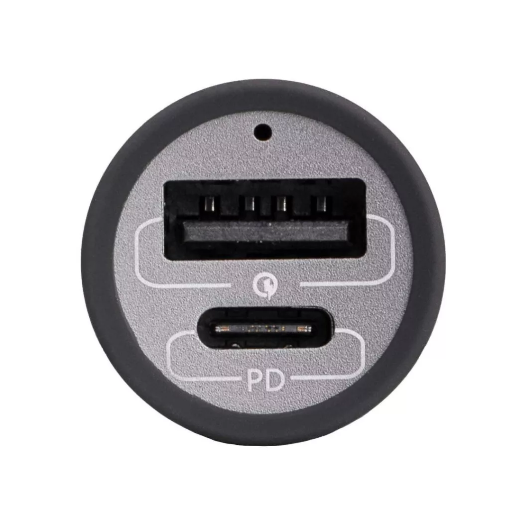 Az autós töltő két porttal rendelkezik: USB-C és USB-A, így egyszerre két eszközt is tölthetsz. Az USB-A port támogatja a Quick Charge (QC) technológiát, így gyors töltést biztosít az olyan eszközök számára, mint az okosórák vagy okostelefonok (pl. Samsung Galaxy vagy iPhone).