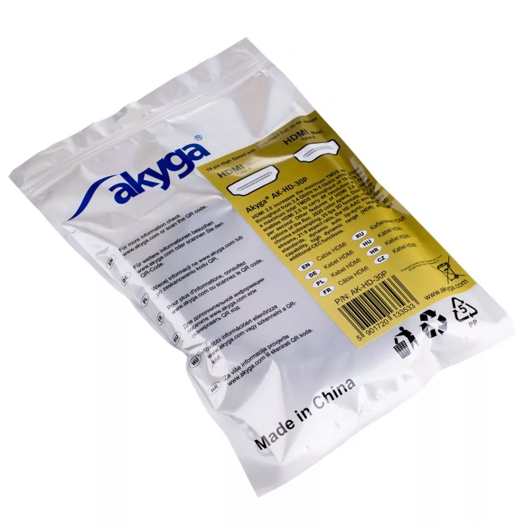 Kiváló minőségű Akyga® AK-HD-30P kábel 3 m hosszúságú HDMI csatlakozókkal rendelkező eszközök csatlakoztatásához.