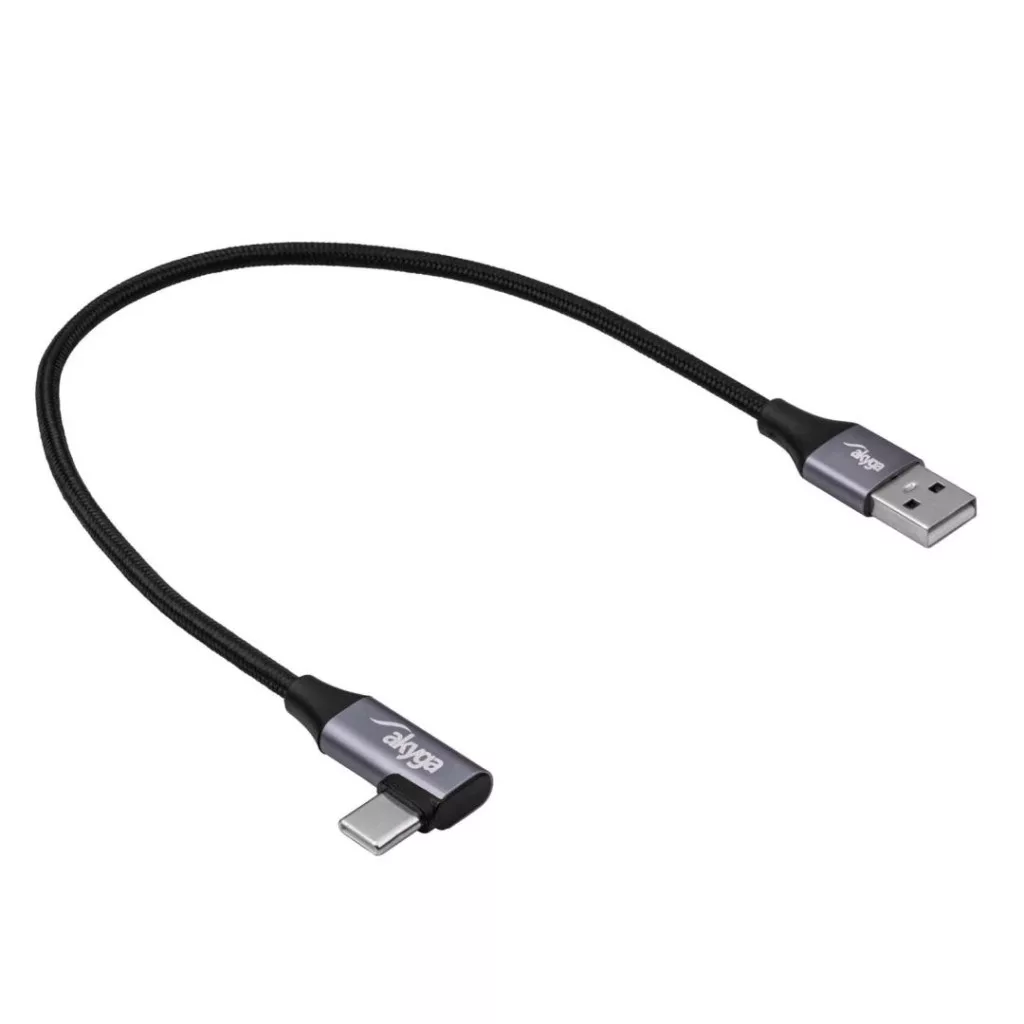 Az Akyga® AK-USB-58 hajlított USB-C kábel egy nagyszerű megoldás, amelyet a kényelem érdekében olyan helyiségekbe terveztünk, ahol a hely korlátozott. Rövid, 30 cm-es hosszának köszönhetően ideális autóba – nincs többé összegabalyodott vagy felesleges kábel. Tökéletes választás, ha okostelefonod USB-A porttal rendelkező autórádióhoz szeretnéd csatlakoztatni. A rövid kábel stabil kapcsolatot biztosít az Android Auto vagy Apple CarPlay rendszerhez.