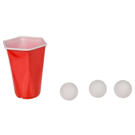 Beer Pong hatszögletű műanyag pohár szett labdákkal.