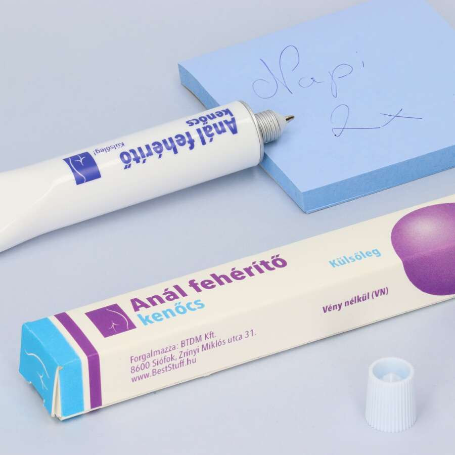 A kockázatokról és a mellékhatásokról felesleges megkérdezned a kezelőorvosodat vagy édesanyádat. Ez egy vicces ajándéktárgy, semmid se lesz tőle fehérebb. A doboz 1 db kenőcs formájú golyóstollat tartalmaz, de még az is kéken fog. Végbélen történő alkalmazása ellenjavalt.