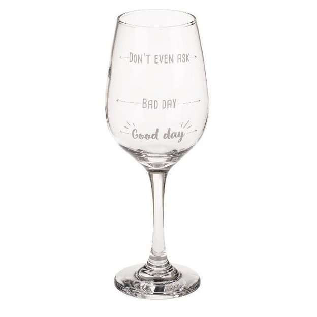 Mondd el milyen napod volt borospohár.Mindenkinek jól esik egy hosszú nap után egy kis vörösbor a nap lezárásaként… csak az a kérdés, hogy mennyi? Ez a pohár három szintből áll:Ne kérdezz: Ma volt életed egyik legrosszabb napja, annyira rossz, hogy inkább nem is akarsz róla beszélni és ne is kérdezzen róla?Rossz nap: Ha már eddig a szintig eljutsz akkor kicsit szebben látod már a világot és a borzalmasan rossz nap átalakul egy szimpla rossz nappá.Jó nap: Ha eddig eljutsz a legfelső szintről, akkor lehetett akármilyen rossz napod, most már garantáltan jobb lesz! De ha úgy érzed kéne még egy kis löket, akkor kezd előröl és haladj szintről szintre úja! Garantáljuk, hogy két pohár után azt is elfelejted miért volt rossz napod!Űrtartalom: 420 mlMatricázott feliratMéret: kb. 22 cm magasságAnyag: ÜvegCsomagolás: díszcsomagolásban