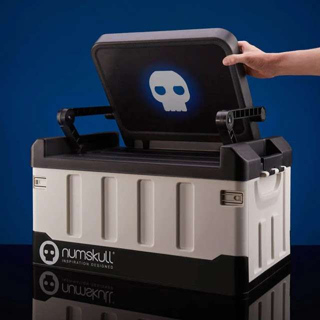 Numskull Playstation PS5 ihlette tároló doboz összecsukható székkel.