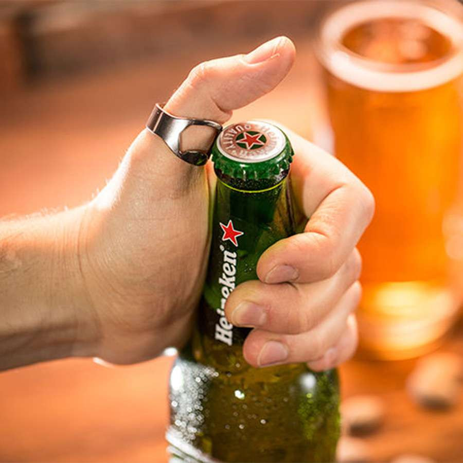 Előfordult már veled, hogy benne vagy egy házi buliban épp pattintanál egy friss üveg sört, de senki nem tudja hol van a sörnyitó? Ekkor jönnek az alternatív sörnyitási technikák, amiknek a házigazda nem biztos, hogy örül majd. Ez a gyűrű nagyon egyszerű megoldással szolgál a fenti problémára és mindig kéznél lesz vagy ujjnál.Mérete: választható gyűrű átmérő 20-21mm vagy 22-23 mmSúlya: 10 gAnyaga: rozsdamentes acél