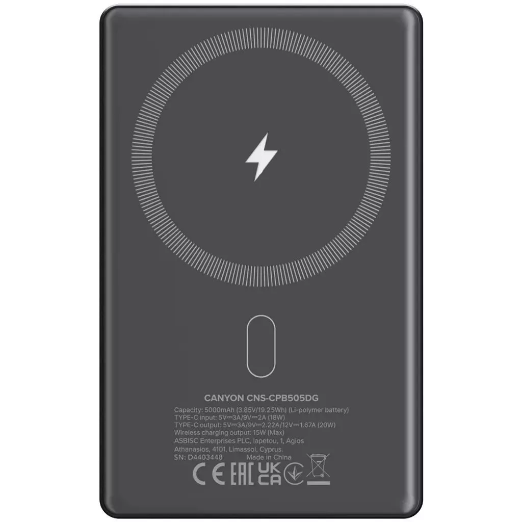 Canyon CNS-CPB505DG 5000mAh PowerBank Dark Grey