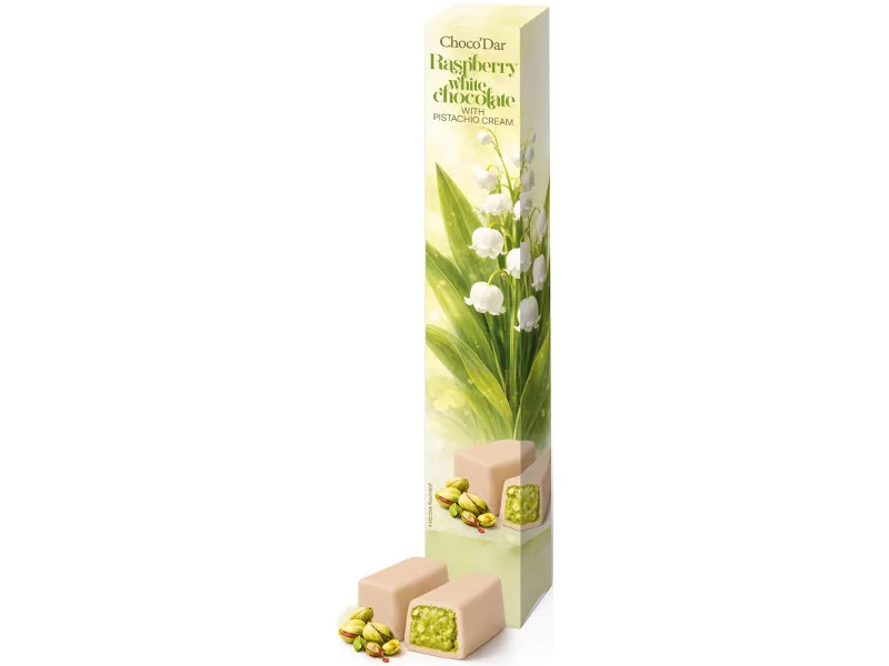 ChocoDar desszert 70g Gyöngyvirág Málnás-Pisztáciás fehércsokoládé