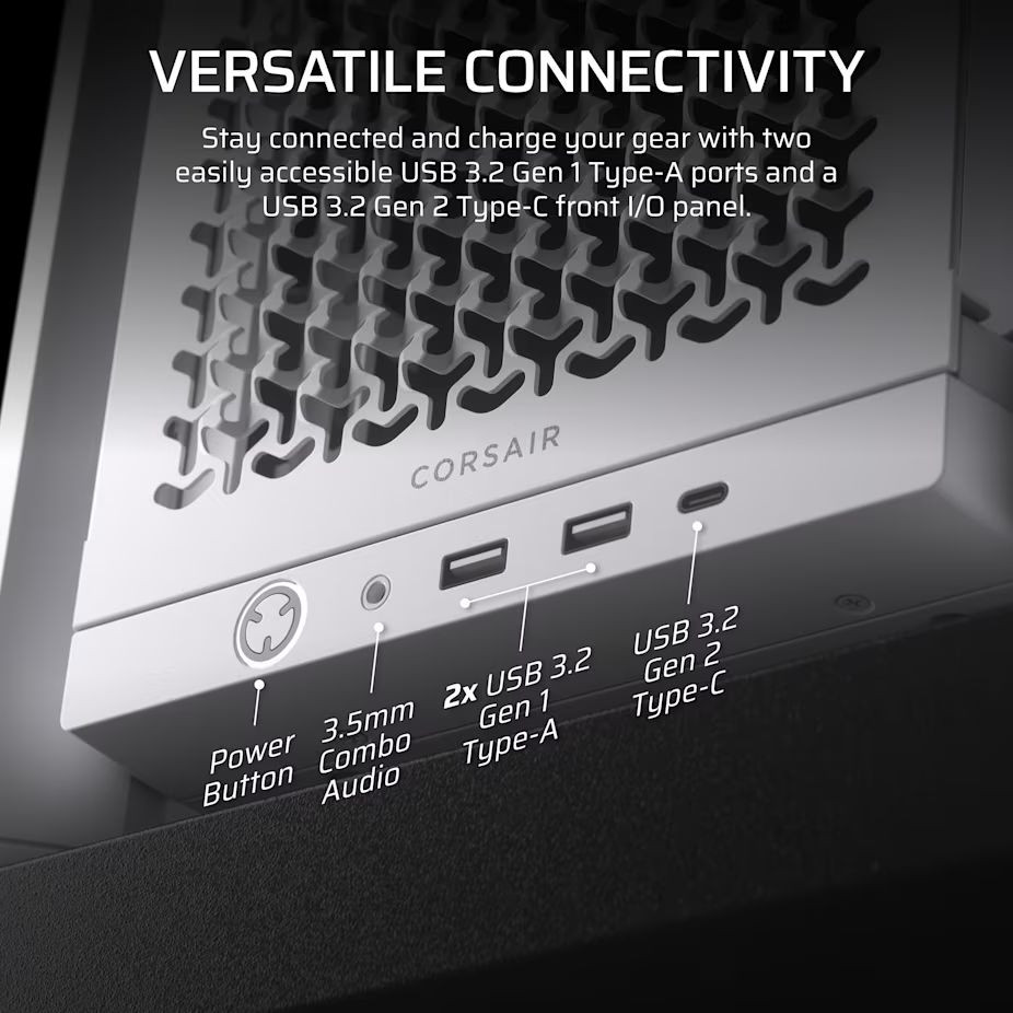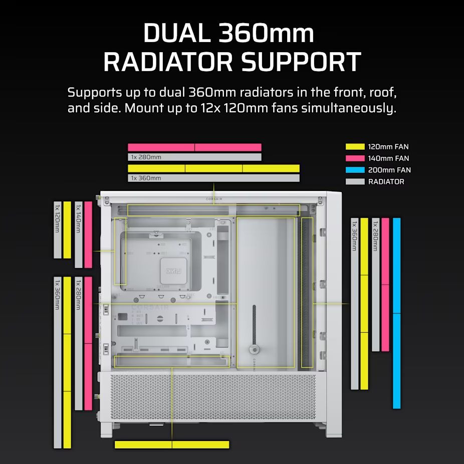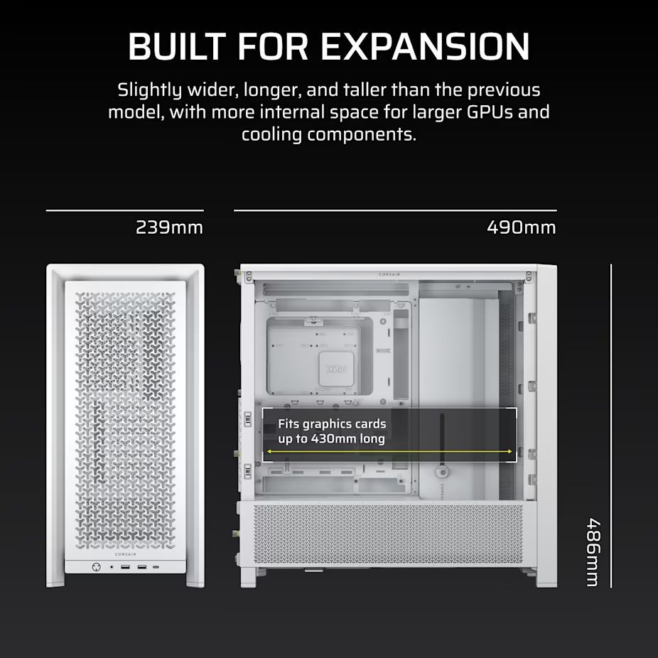 E-ATX, White, 2x3,5", 4x2,5", 2xUSB3.2, 1xUSB Type-C, Audio, Táp nélkül, 486x490x239mm, Tempered glass window, Gamer