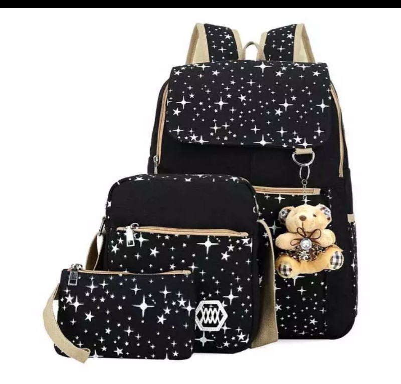 Magába foglal egy hátizsákot, egy oldaltáskát, hogy mindig a megfelelő nagyságú táskával induljon útra a gyermeked.  Valamint, még egy neszesszer táskát is, amelyben minden szükséges dolgot elbír, amely a testnevelés órák után, valamint a délutáni edzések, foglalkozások után szükséges lehet a számára.