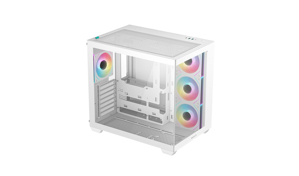 ATX, White, 2x3,5", 3x2,5", 2xUSB3.0, 1xUSB Type-C, Audio, Táp nélkül, 440x285x399mm, Ventilátor:4x12cm, Tempered glass window, RGB, Gamer