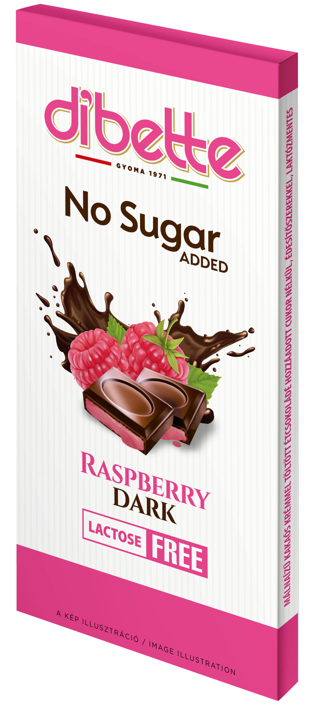 Összetevők: étcsokoládé 65% (kakaómassza, édesítőszer: izomalt, kakaóvaj, emulgeálószerek: napraforgó lecitin, aroma),