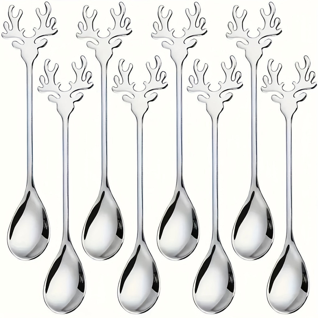 (Kialakítás) Rénszarvas agancs dizájn: A kanálkészlet minden darabja elegáns rénszarvas agancs mintával van díszítve, ami különleges ünnepi hangulatot ad minden alkalomra.