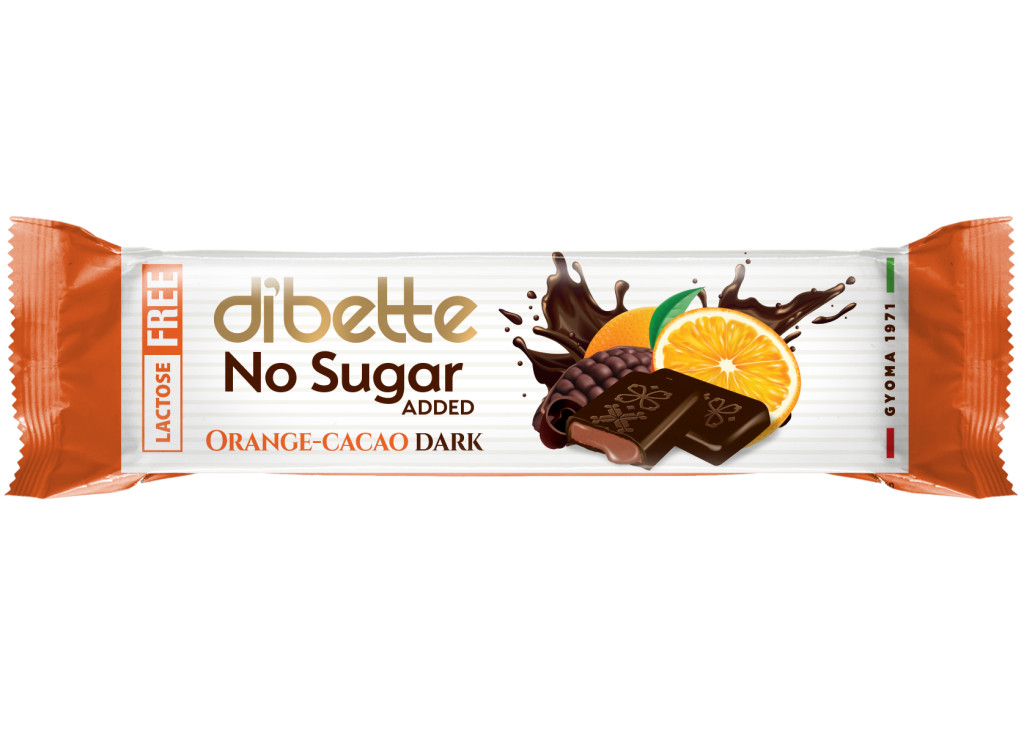 DIBETTE NSA Narancs ízű kakaós krémmel töltött étcsokoládé szelet hozzáadott cukor nélkül, édesítőszerekkel, 22 g Laktózmentes