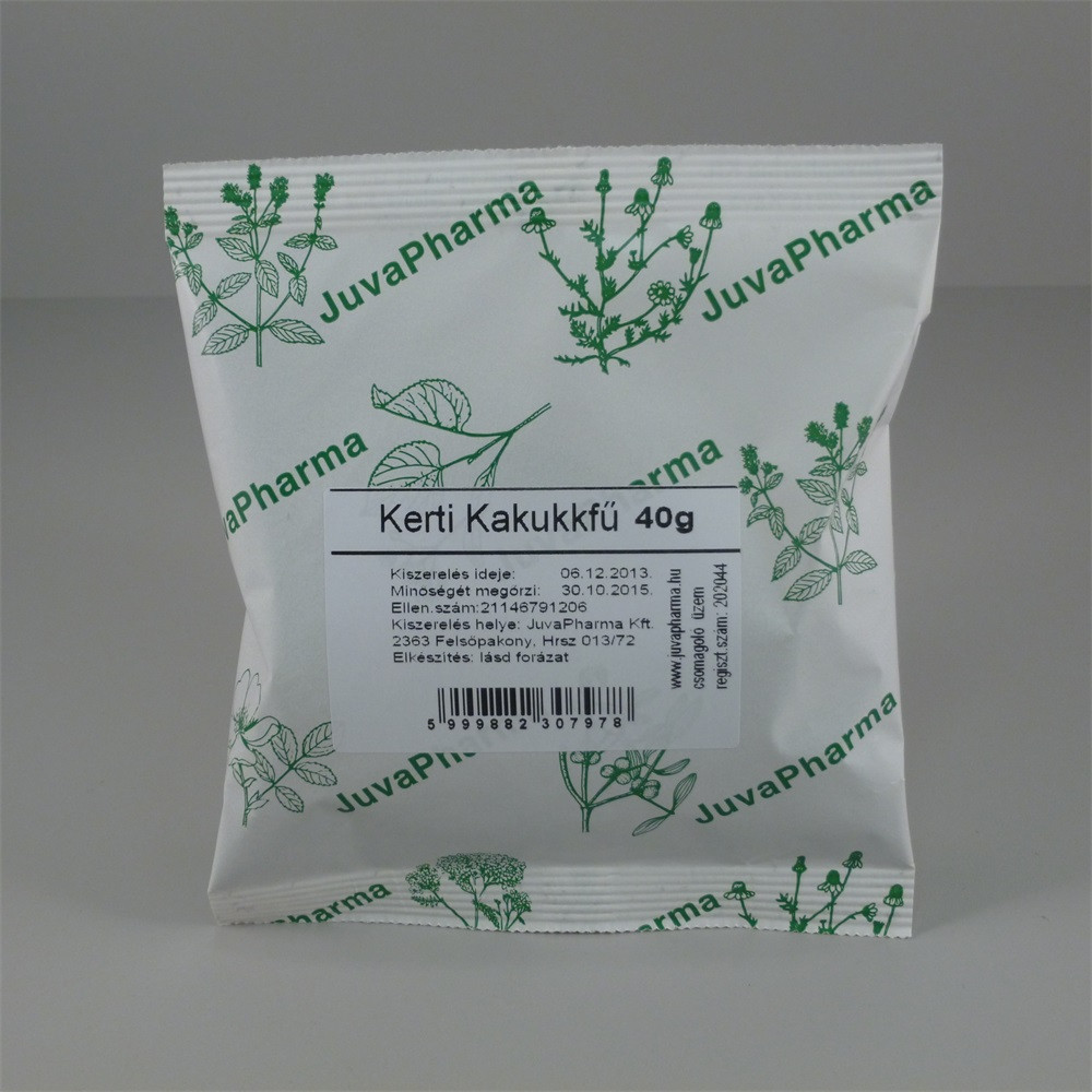 JUVAPHARMA KERTI KAKUKKFŰ TEA Gyulladáscsökkentő, fertőtlenítő, baktérium- és gombaellenes hatású gyógynövény. Oldja a légző- és emésztőrendszer görcseit, köhögéscsillapító, köptető hatású. Főként meghűléses, hurutos légúti megbetegedése kezelésére alkalmazható. Forrázata szájüregi gyulladás, rossz szájszag esetén öblögetésre is használható.