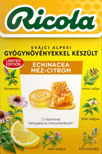 A Ricola Echinacea és Méz gyógynövénycukorka 13 féle svájci alpesi gyógynövény rügyeiből, gyökeréből és virágából származó titkos recept alapján készülő gyógynövénykivonatot és C vitamint tartalmaz. Glutén-, és laktózmentes.