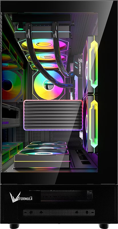 ATX, Black, 2x3,5", 2x2,5", 2xUSB3.0, 1xUSB Type-C, Audio, Táp nélkül, 456x435x230mm, Tempered glass window, Gamer
