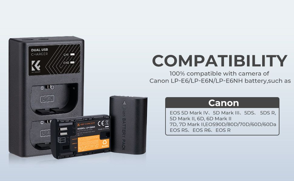 - Kompatibilitás: Kifejezetten az LP-E6NH típusú akkumulátorokhoz tervezve.