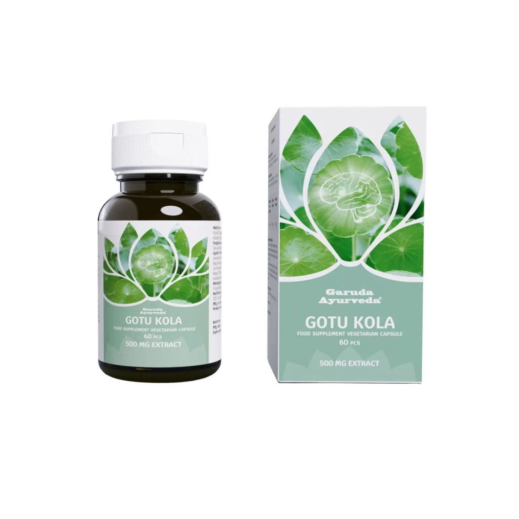 Garuda Ayurveda Gotu Kola kapszula 60dbAz agy információs hálózatának megfelelő működését segítő, valamint a memóriát és a koncentráló képességet támogató ayurvedikus étrend-kiegészítő.Segíthet leküzdeni a szellemi kimerültség tüneteit.Védi és támogatja az érfalak rugalmasságát bármely korban.A Gotu Kola egy Ázsiában őshonos növény, melyet az Ayurveda szent növényként tart számon az agyműködésre gyakorolt jótékony hatása miatt.100% tisztaságú növényi kivonat, adalékanyagmentes vegetáriánus kapszulában.A termék gyártója a Baidyanath, India elsőszámú ayurvedikus gyógyászati márkája.NYILVÁNTARTÁSI SZÁM: OÉTI-9287/2011Adagolás: Naponta 2x1-2 kapszula étkezések után.Hatóanyag 1 adagban: 100% tisztaságú, adalékanyagmentes Ocimum sanctum 500 mgTárolás: Száraz, hűvös, fénytől és nedvességtől védett helyen, az eredeti csomagolásában. Gyermekektől távol tartandó!MELLÉKHATÁSOK, ELLENJAVALLAT:Terhesség és szoptatás ideje alatt szedése nem javallott.Nyugtatók szedése mellett alkalmazása nem javasolt.Ne lépje túl a napi ajánlott mennyiséget!Étrend kiegészítők szedése előtt konzultáljon háziorvosával!Az étrend kiegészítők szedése nem helyettesíti a kiegyensúlyozott étrendet!Összetevők: 100% tisztaságú, adalékanyagmentes Centella asiatica 500 mg