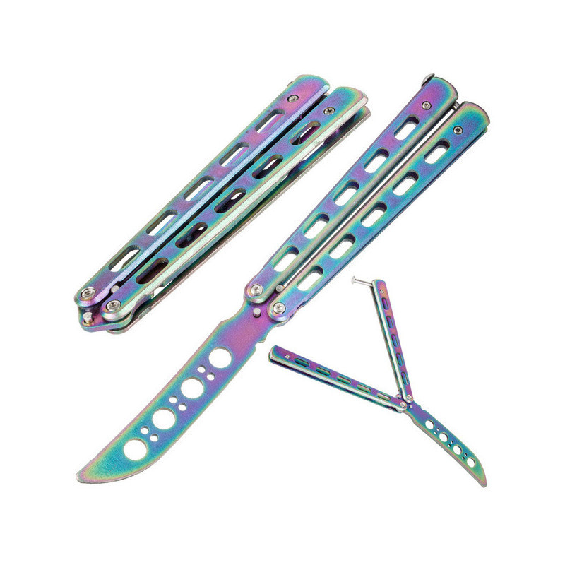 Fejleszd trükkjeidet biztonságosan ezzel a tompa pengéjű pillangó edzőkéssel, amelyet kifejezetten gyakorlásra és trükkök tanulására terveztek. A rozsdamentes acél kialakításnak köszönhetően strapabíró és tartós, míg a tompa penge garantálja a biztonságos használatot, akár teljesen kezdőként is.