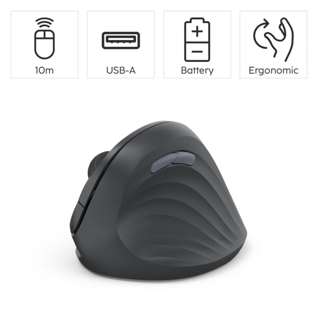 Vezeték nélküli, Wireless 2,4GHz, Optikai, 1600DPI, Black, Vertikális, Csendes működés