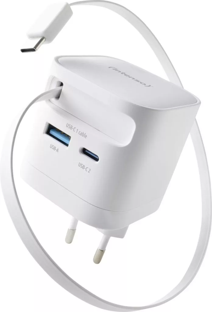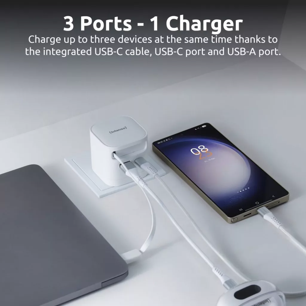 Az Intenso Power Adapter W65ACIC GaN ideális megoldás a modern eszközök gyors és hatékony töltéséhez. Maximális teljesítménye 65 W, támogatja a Power Delivery 3.0, PPS és Quick Charge 4.0 szabványokat – tökéletes okostelefonok, táblagépek vagy notebookok számára. A beépített, kihúzható USB-C kábelnek és a kiegészítő USB-C és USB-A csatlakozóknak köszönhetően több eszköz is egyszerre tölthető maximális sebességgel.