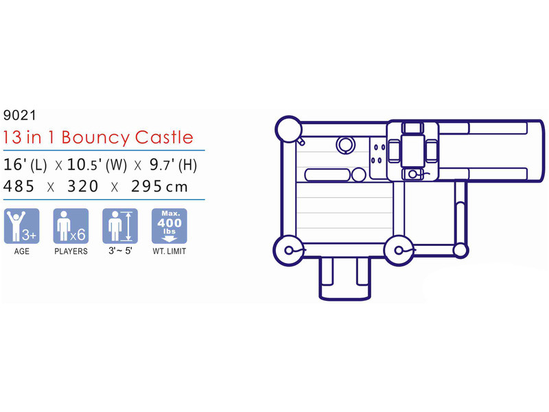 Színpompás ugrálóvár 485 x 320 x 295 cm