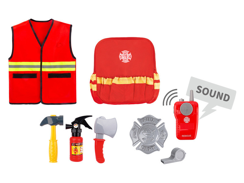 Tűzoltó jelmez hátizsákban 6 kiegészítővel