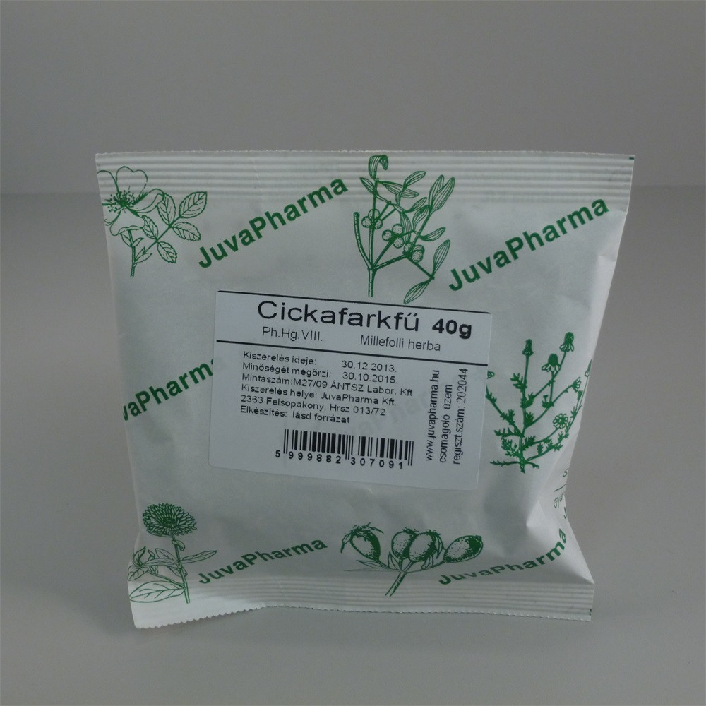 JUVAPHARMA CICKAFARKFŰ TEA A Juvapharma cickafarkfű tea étvágytalanság, görcsös jellegű gyomor-, bél- és epebántalmaknál, valamint gyomorhurutnál ajánlható, valamint vénás keringési zavarok (aranyér, lábszárfekély), visszértágulás ellen, húgyutak betegségei esetén.