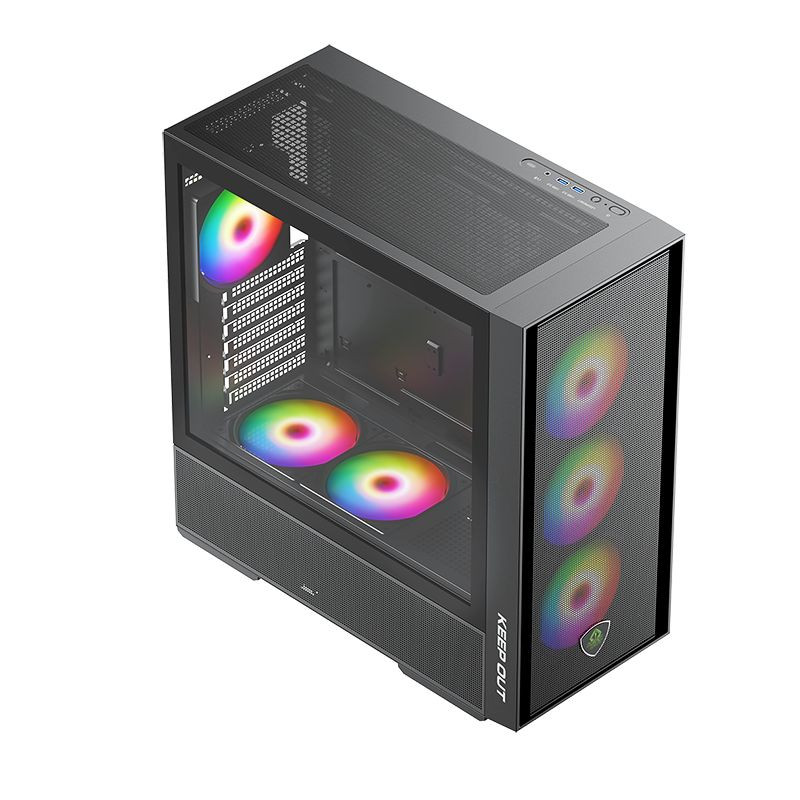 ATX, Black, 1x3,5", 1x2,5", 2xUSB3.0, Audio, Táp nélkül, 465x453x215mm, Ventilátor:6x12cm, Tempered glass window, RGB, Gamer