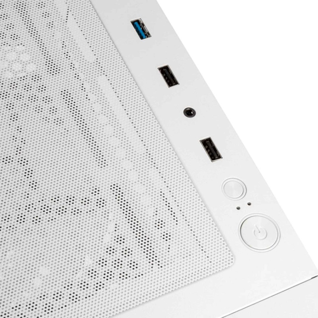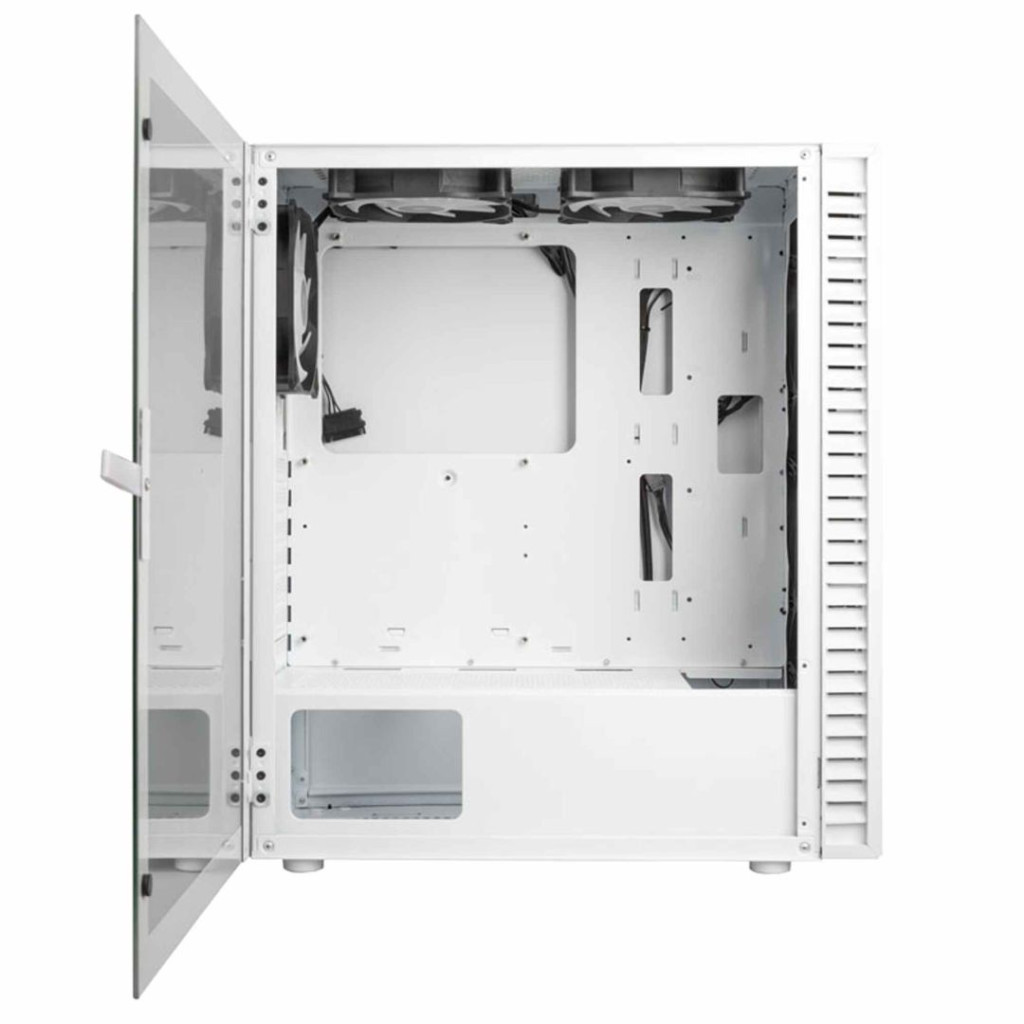 ATX, White, 2x3,5", 2x2,5", 2xUSB2.0, 1xUSB3.0, Audio, Táp nélkül, 390x200x449mm, Ventilátor:3x14cm, 3x12cm, Tempered glass window, RGB, Gamer