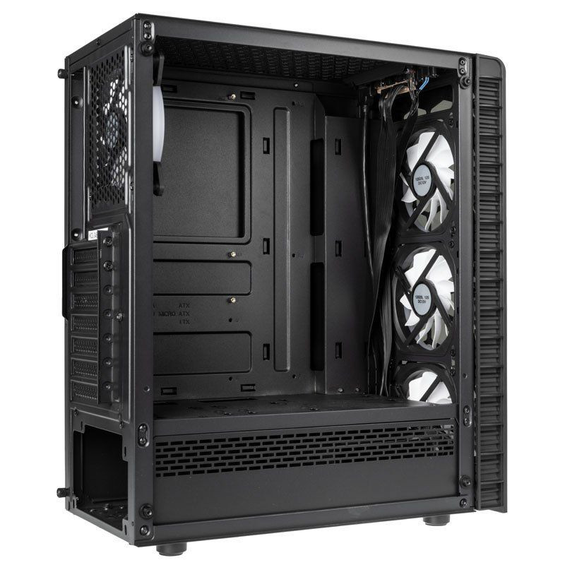 ATX, Black, 2x3,5", 3x2,5", 2xUSB2.0, 1xUSB3.0, Audio, Táp nélkül, 190x440x400mm, Ventilátor:4x12cm, Tempered glass window, RGB, Gamer