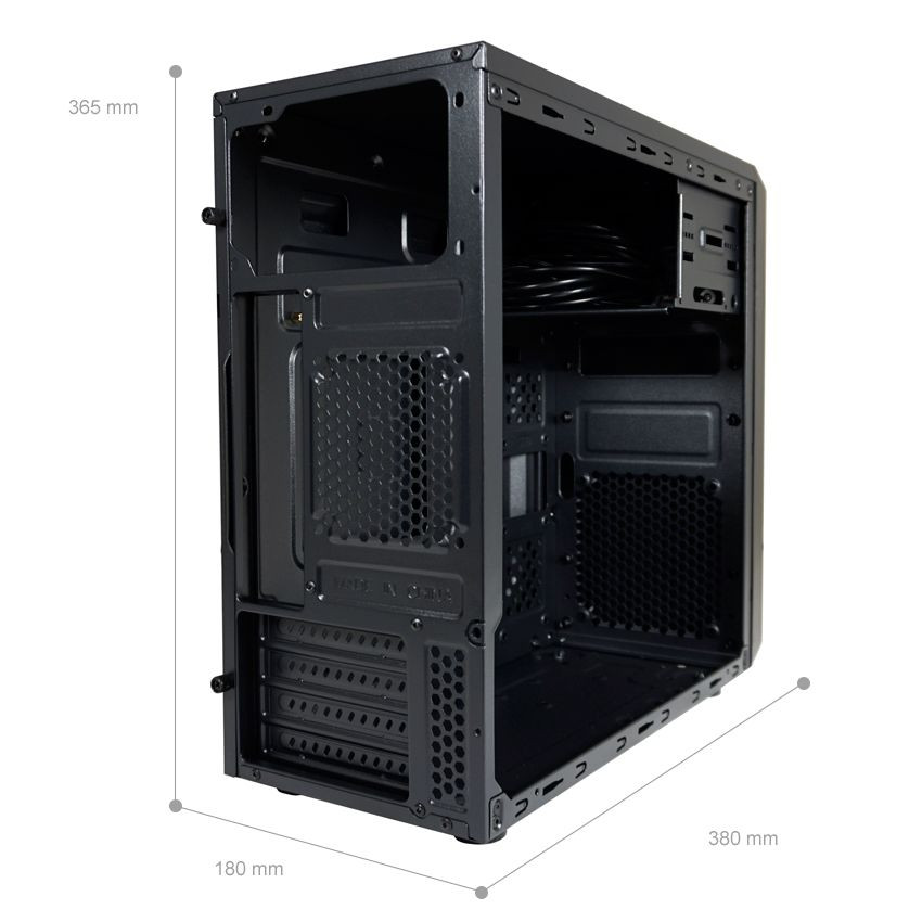 microATX, Black, 1x5,25", 2x3,5", 2x2,5", 2xUSB3.2, 1xUSB Type-C, Audio, Táp nélkül, 365x180x380mm