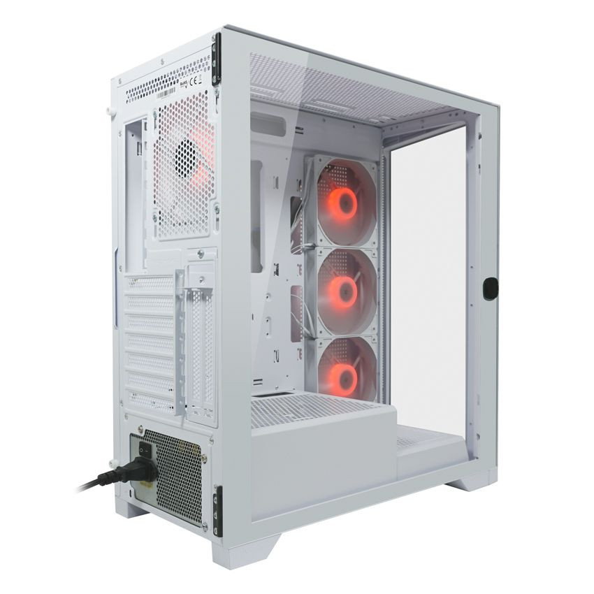 ATX, White, 1x3,5", 2x2,5", 2xUSB2.0, 2xUSB3.2, 1xUSB Type-C, Audio, Táp nélkül, 485x210x450mm, Ventilátor:4x12cm, Tempered glass window, RGB, Gamer