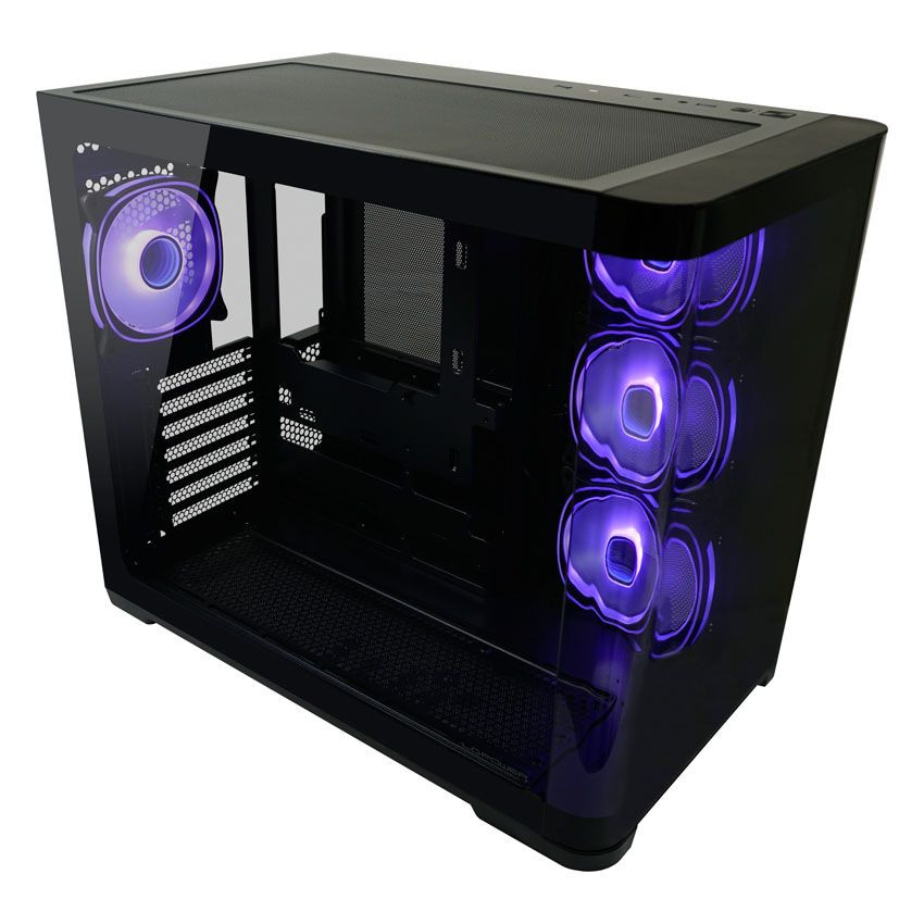 ATX, Black, 2x3,5", 3x2,5", 2xUSB3.2, 1xUSB Type-C, Audio, Táp nélkül, 400x285x470mm, Ventilátor:4x12cm, Tempered glass window, RGB, Gamer