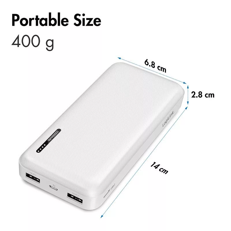 A LogiLink mobil power bank (kiegészítő akkumulátor) különösen alkalmas a nagy energiafogyasztású mobiltelefonokhoz és táblagépekhez, és lehetővé teszi, hogy útközben is töltse készülékeit. Kompakt kialakításának és kis súlyának köszönhetően ez a kiegészítő akkumulátor könnyedén elkísérheti Önt bárhová, és megakadályozza, hogy végkészülékei a legrosszabb pillanatokban lemerüljenek. Kompatibilis minden USB-kompatibilis eszközzel, például okostelefonokkal, okosórákkal, tabletekkel, fejhallgatókkal, digitális fényképezőgépekkel és még sok mással.