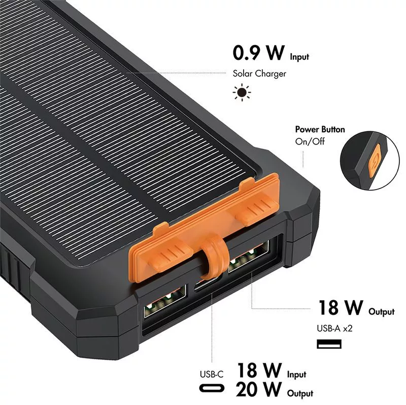Ezt a strapabíró hordozható akkumulátort kifejezetten kültéri használatra fejlesztették ki, például kempingezéshez, túrázáshoz vagy horgászathoz. Egy nagy teljesítményű, 10 000 mAh-s lítium-polimer akkumulátort ötvöz egy beépített napelemmel, amely a napfényt kiegészítő energiaforrásként használja. Az IP64 minősítésnek köszönhetően a készülék por- és fröccsenő víz ellen védett. A hordozható akkumulátor támogatja a gyors töltést akár 20 W-os teljesítményen (Power Delivery), és vészhelyzetekre beépített LED-es zseblámpával is rendelkezik.