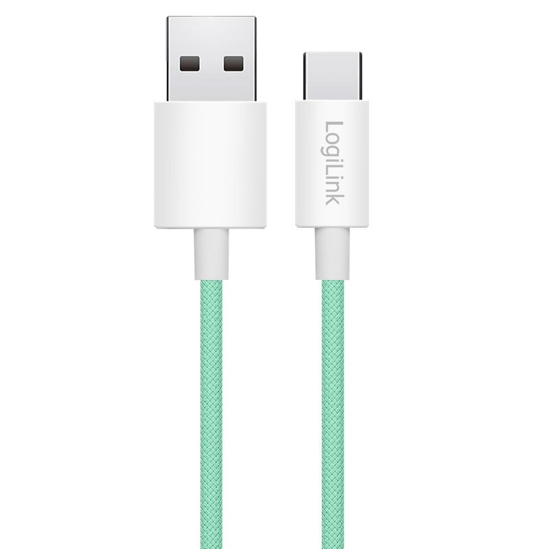 USB kábel, USB-A, USB-C, USB2.0, Male/Male, 1m, Green, Töltő és adatkábel, Szövetborítás