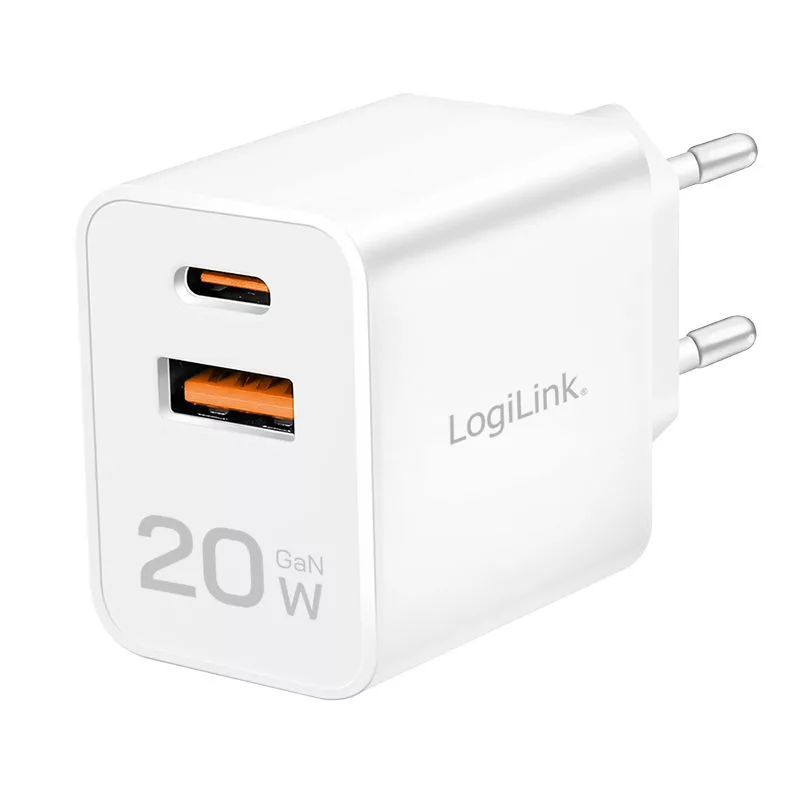 Adapter, 1xUSB-A, 1xUSB-C, 5V/9V/12V, 3A, 20W, PD, White