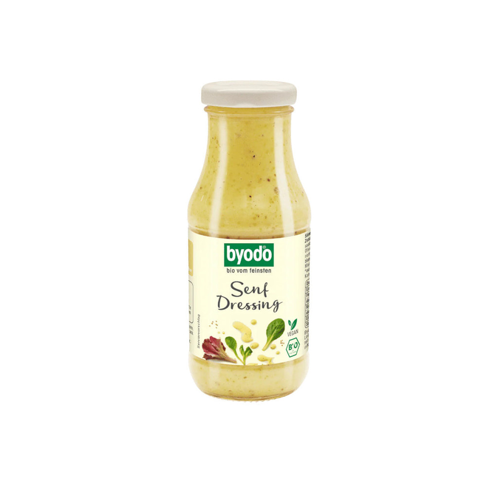 Még finomabb receptúrával! A népszerű Byodo bio mustáros öntetet továbbfejlesztettük – mostantól még könnyedebb szájérzettel kényeztet. A 245 ml-es palackos kiszerelésnek köszönhetően gyors és kényelmes megoldás azoknak is, akik kevés idővel, de annál nagyobb ízélményre vágynak: csak rázd fel, öntsd a salátára, és élvezd! Tippünk: A Byodo bio mustáros öntet különösen jól illik rukkolás, uborkás és madársalátás fogásokhoz – a finom mustáros csípősség és az enyhe ecetes savasság igazán pikáns ízvilágot ad nekik.Összetevők: Víz, napraforgóolaj*, mustár (10 %) (víz, mustármag*, brandy ecet*, tengeri só), agávészirup*, extra szűz olívaolaj, Condimento Bianco (fehérborecet*, koncentrált szőlőmust*), brandy ecet*, kősó, napraforgófehérje*, sűrítőanyag: guargumi*, nyílgyökér*, kukoricakeményítő*, hagyma*, sárgarépa*, zöldfűszerek*, fűszerek* *ellenőrzött ökológiai gazdálkodásbólÁtlagos tápérték 100g termékben:Energia: 696kJ/ 168 kcalZsír: 15g Amelyből telített zsírsavak: 1,7g Szénhidrát: 5,8g Amelyből cukrok: 4,5g Fehérje: 1,2g Rost: Só: 1,9g