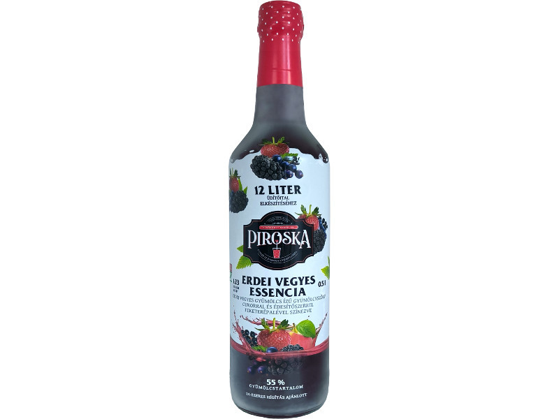 A Piroska szörp Essencia Erdei Vegyes változata egy 0,5 literes üvegben érhető el. Erdei vegyes ízvilág jellemzi, amely a gyümölcsök friss, természetes aromáját hozza elő.