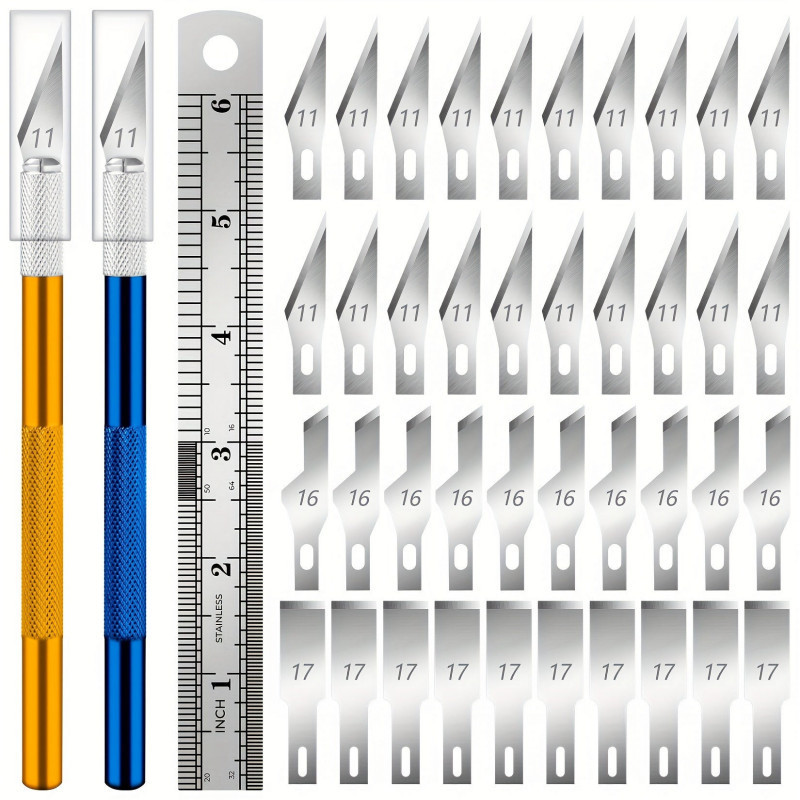 A Precíziós kézműves kés készlet, 40 db tartalék pengével egy igazi nélkülözhetetlen kiegészítő a kreatív lelkeknek és a DIY szerelmeseinek! Ez a precíziós kézműves kés készlet mindent tartalmaz, amire szükséged lehet a művészethez, scrapbookinghoz és stencilkészítéshez. A készletben 40 tartalék késpenge található, így soha nem fog kifogyni a kreatív szellem! A kézműves kés fogantyúja nem visszahúzható, így garantálja a kényelmes fogást és a stabil irányítást a legapróbb részletekben is. A késpenge anyaga szénacél, ami kiemelkedő élességet és tartósságot biztosít. Ez a kés szuper praktikus és könnyen használható, így akár kezdőként is profi hatást érhetsz el vele!