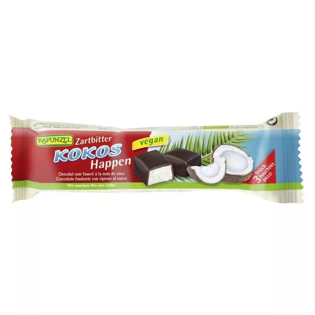 Összetétel: kókuszreszelék* (36%), keserűcsokoládé* (25%) (nádcukor*, kakaómassza*, kakaóvaj*), rizsszirup*, agavészirup*, rizssziruppor* (rizsszirup*, napraforgóolaj*, só), tk. rizsliszt*