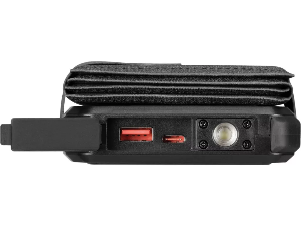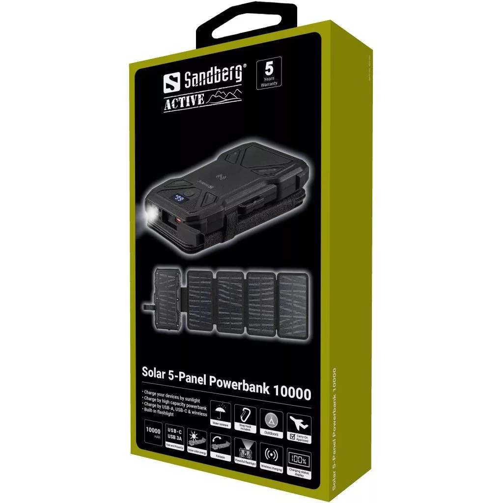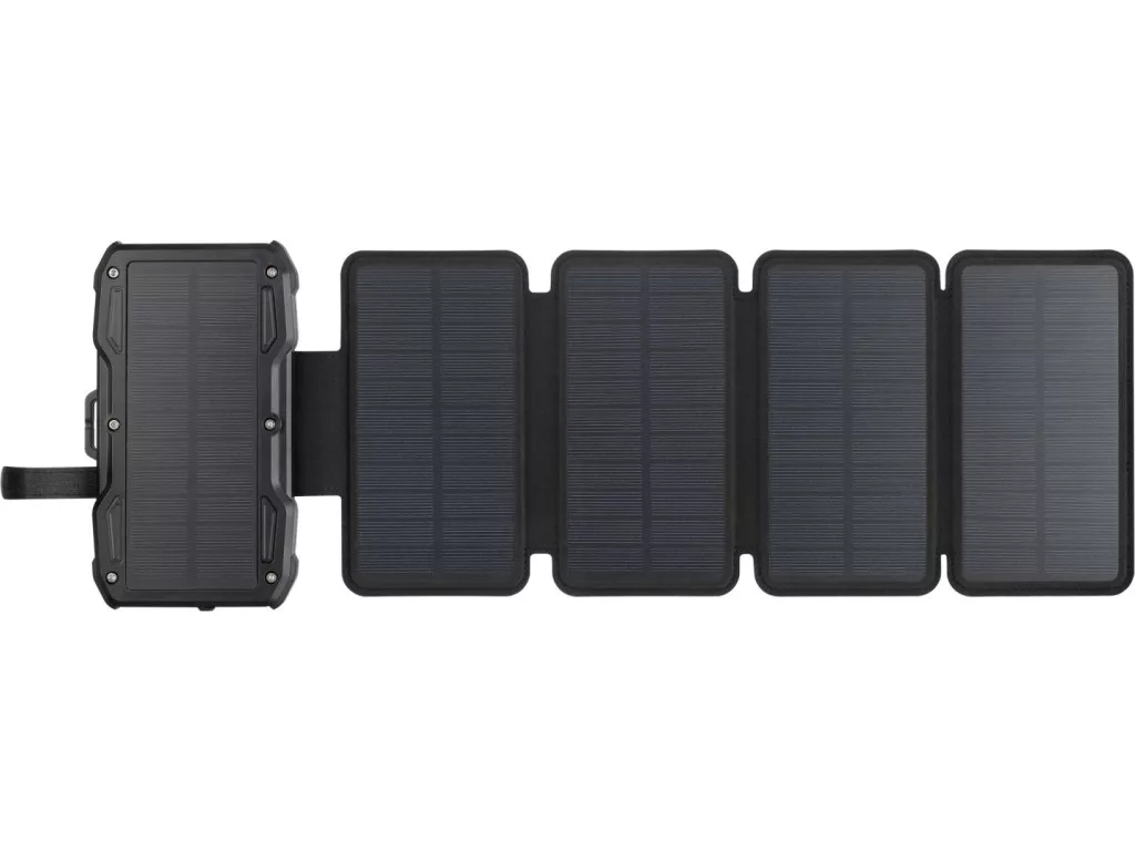 Solar 5-Panel Powerbank 10000 egy nagy teljesítményű 10000 mAh energia-tároló és összehajtható napelem, amelynek segítségével gyorsan és hatékonyan fel tudja eszközeit tölteni napos idő esetén. Amikor például kirándul, erősítse az eszközt a hátizsákjára. Megnyugodhat, hogy mobil eszközei mindig fel lesznek töltve, függetlenül attól, hogy milyen messzire van a legközelebbi konnektortól. A készülés vízálló és rázkódásnak ellenálló anyagokból készült.