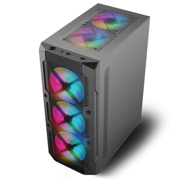ATX, Black, 1x3,5", 1x2,5", 2xUSB2.0, 1xUSB3.0, Audio, Táp nélkül, 485x400x245mm, Ventilátor:4x12cm, Tempered glass window, RGB, Gamer
