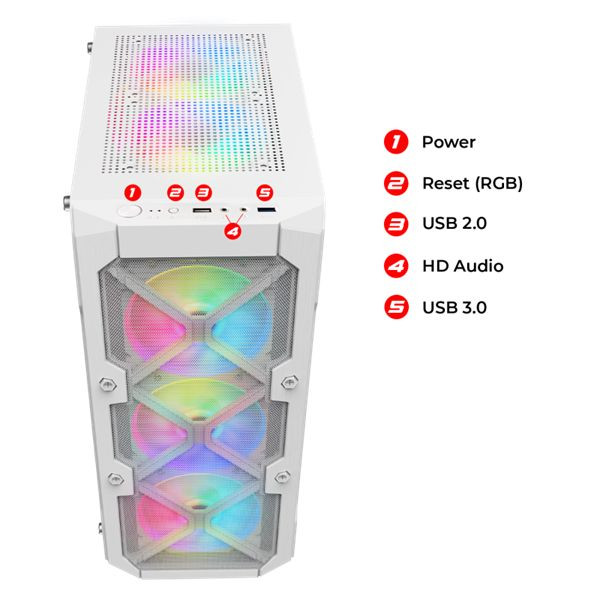 Spirit Of Gamer Rebel XT Tempered Glass White