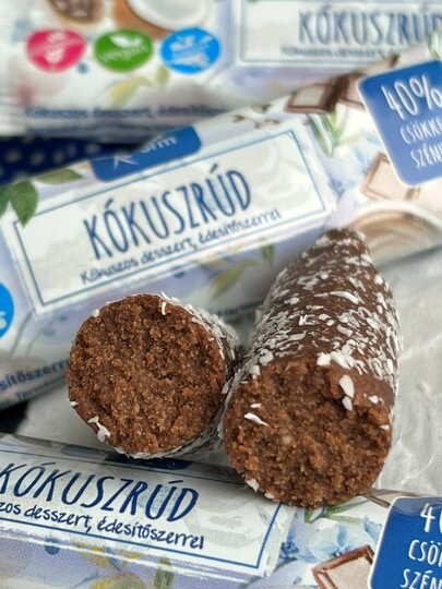 Összetevők: növényi zsír (pálmazsír), élelmi rostok (inulin, polidextróz, dextrin), nedvesítőszer (glicerin), növényi rost koncentrátum (kókusz), édesítőszer (eritrit), növényi olaj (repce), kakaópor, kakaómassza, kókuszreszelék, kakaóvaj, emulgeálószer (napraforgó lecitin), só, aromák.
