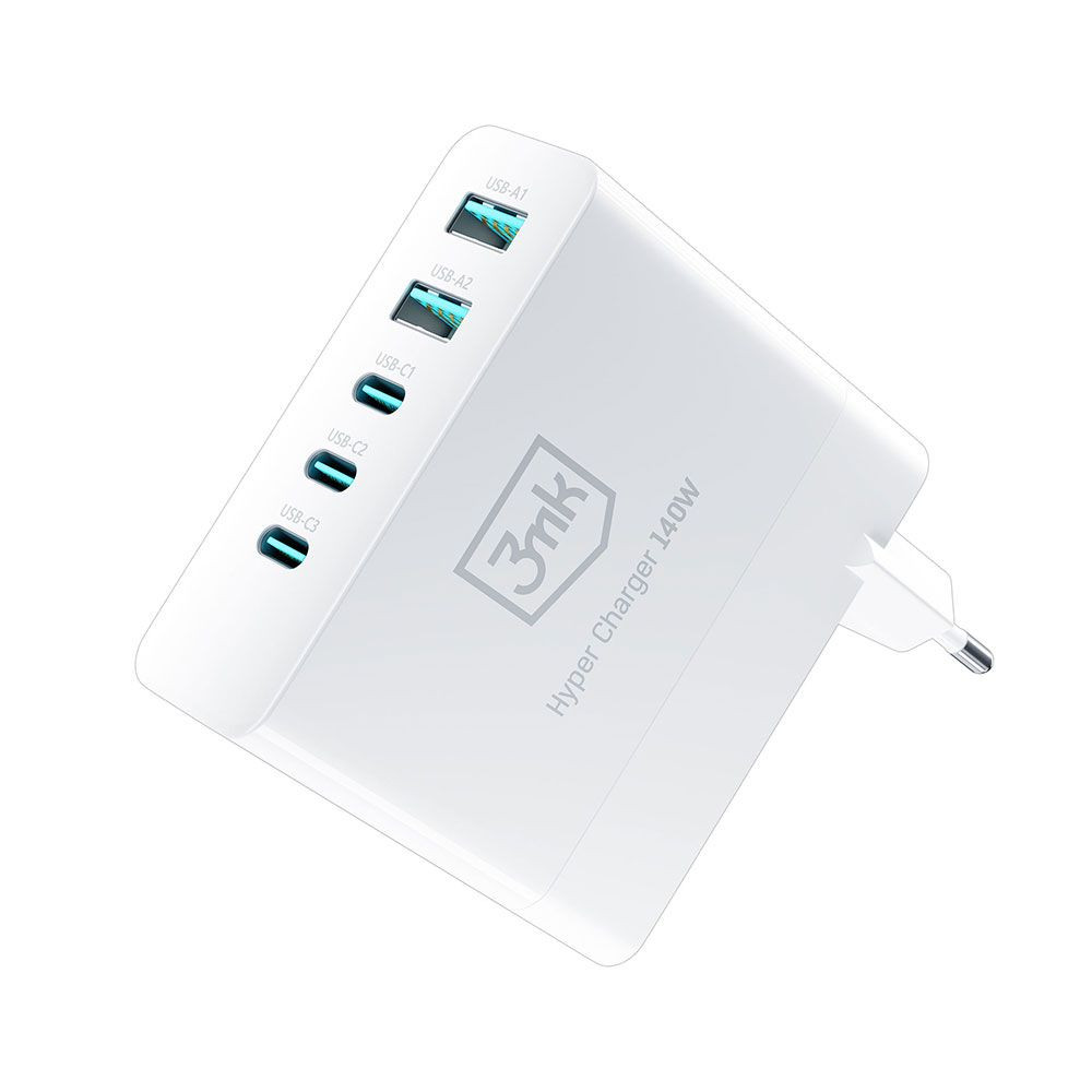 A 140W-os Hyper Charger 140W a Quick Charge és a Power Delivery gyorstöltési technológiával egyszerre akár 5 különböző eszközt is feltölthet. Ennek köszönhetően az okostelefonok, laptopok vagy táblagépek akkumulátorai pillanatok alatt újra tele lesznek, és a készülékek használatra készen állnak. Ideális megoldás utazáshoz – öt töltő helyett csak egyet visz magával – a Hyper Charger 140W-os töltőt. Ezzel a töltővel egyszerűen a lehető legmobilabbá válik!